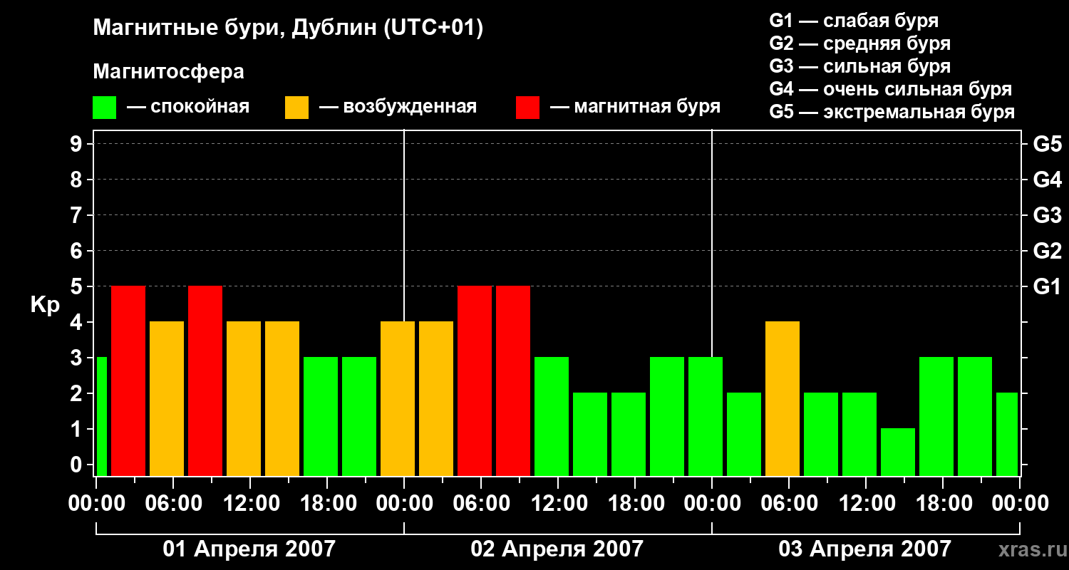 Магнитные бури в Дублине — 3 апреля 2007 года