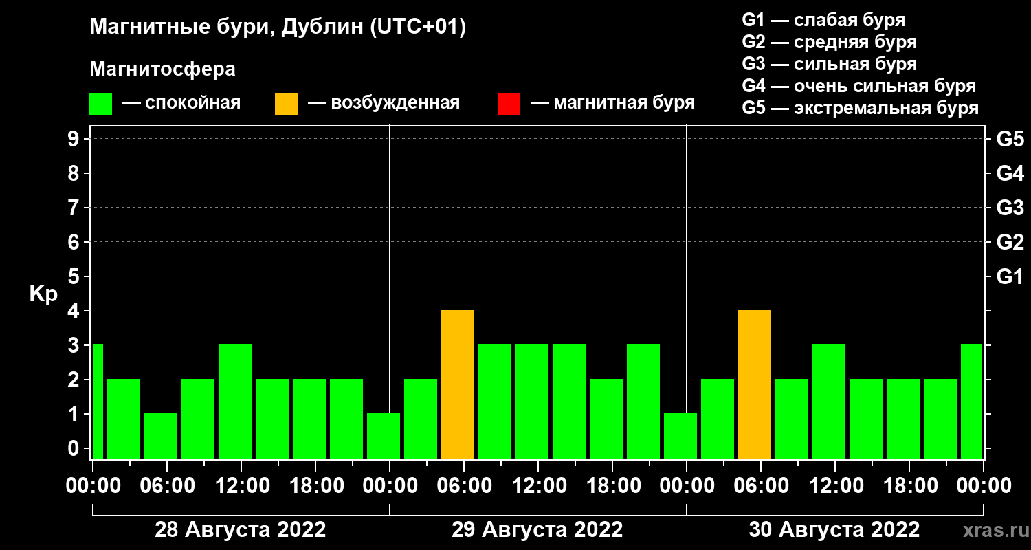 Магнитные бури в Дублине — 30 августа 2022 года