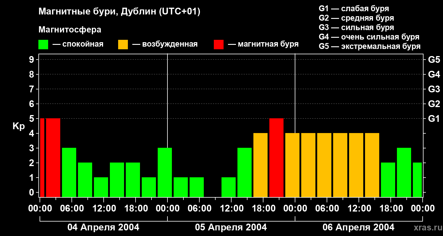 Магнитные бури в Дублине в апреле 2004 года