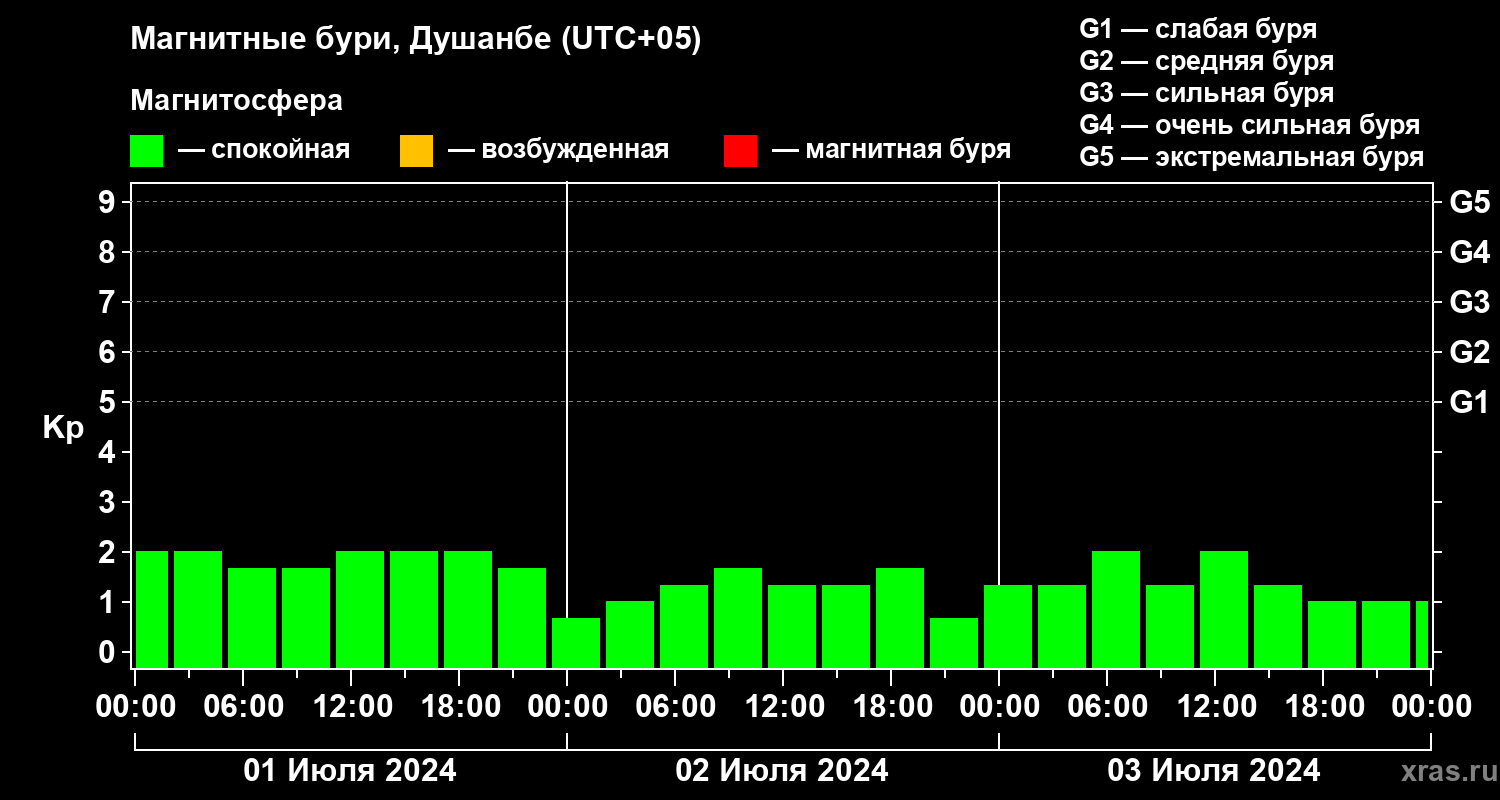 Магнитные бури в Душанбе — 3 июля 2024 года