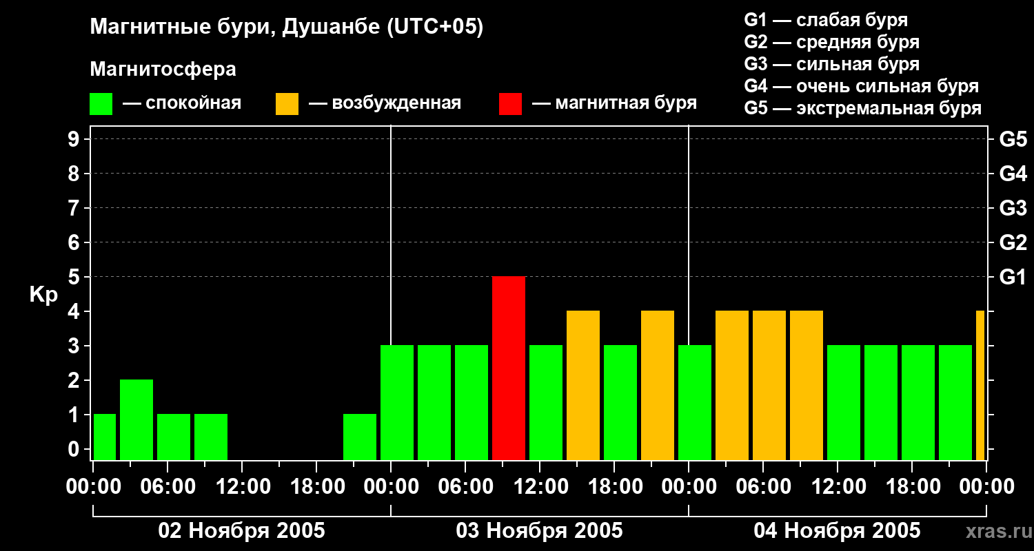 Магнитные бури в Душанбе — 4 ноября 2005 года
