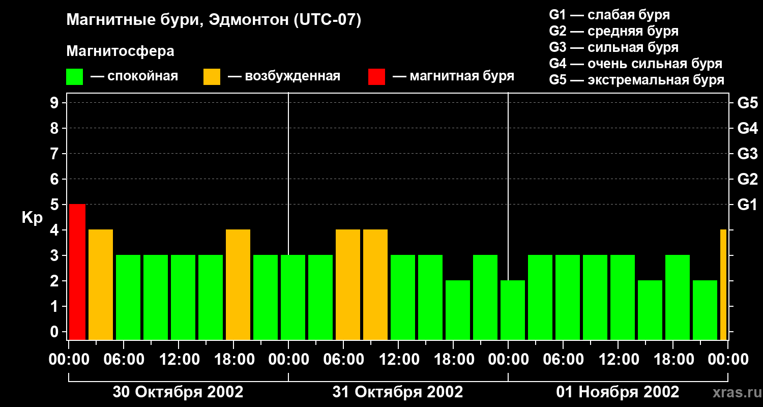 Магнитные бури в Эдмонтоне — 1 ноября 2002 года