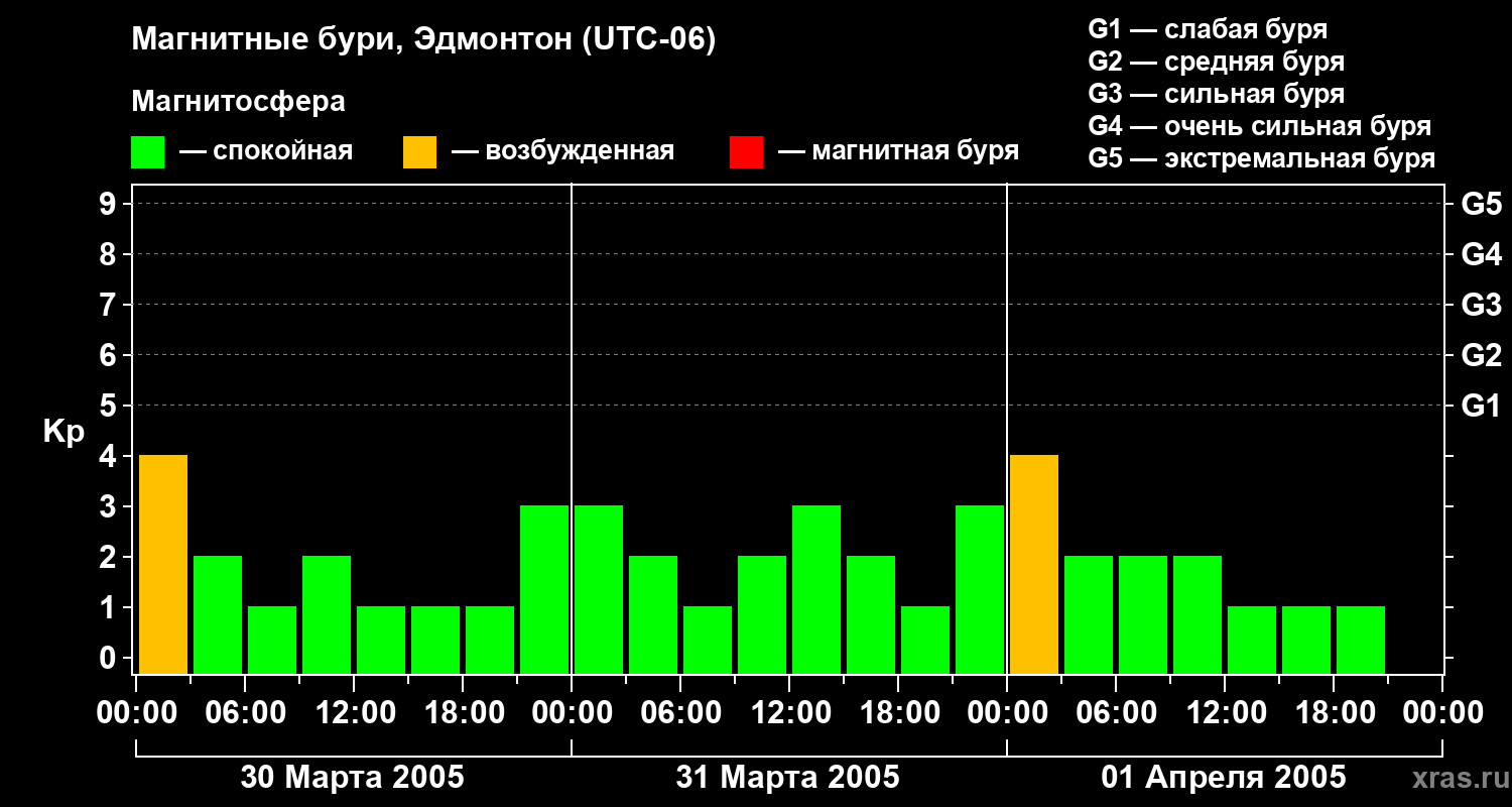 Магнитные бури в Эдмонтоне — 1 апреля 2005 года