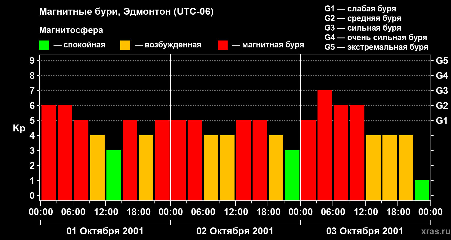 Магнитные бури в Эдмонтоне 3 октября 2001 года
