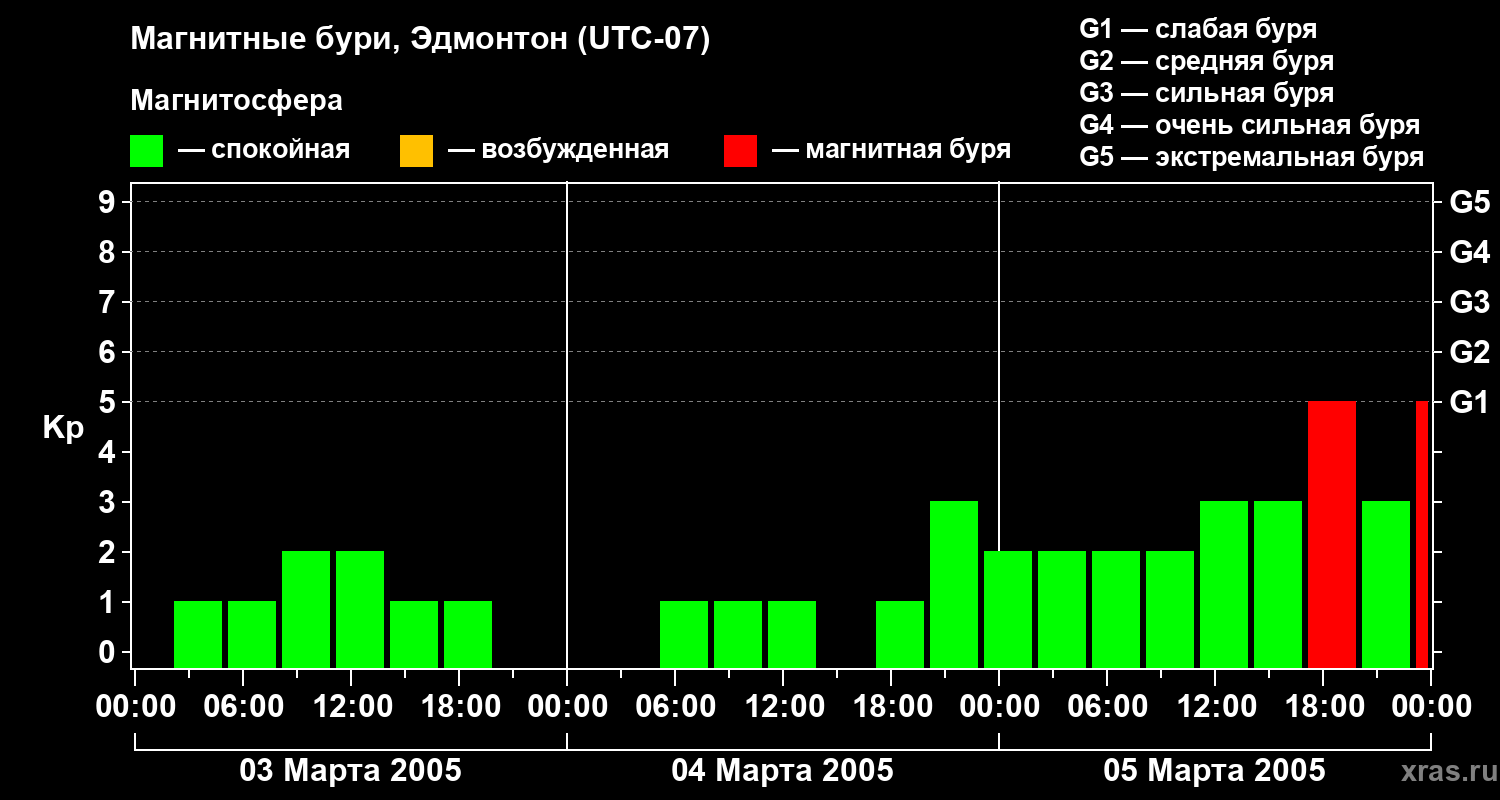 Магнитные бури в Эдмонтоне 5 марта 2005 года