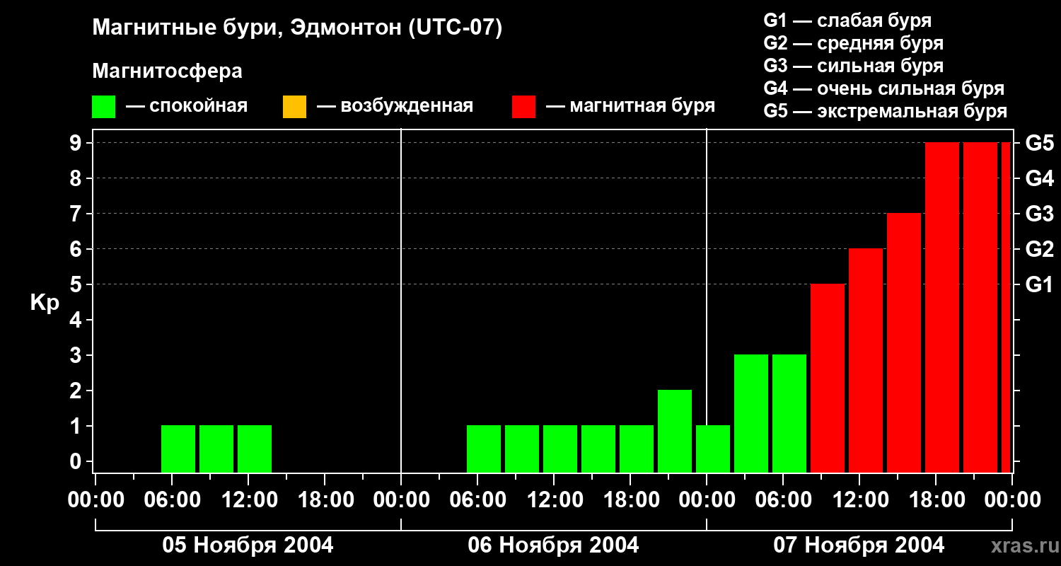 Магнитные бури в Эдмонтоне — 7 ноября 2004 года