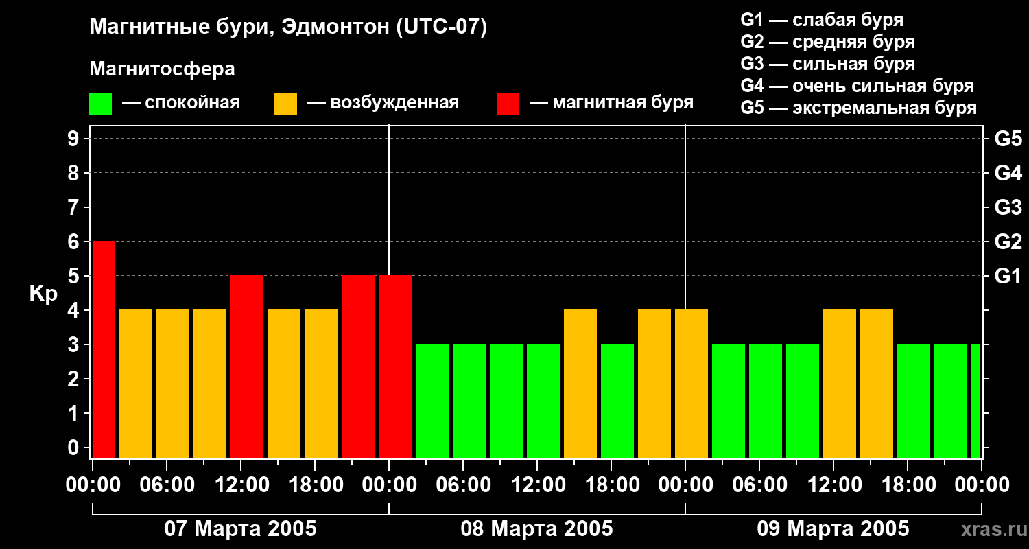 Магнитные бури в Эдмонтоне 9 марта 2005 года