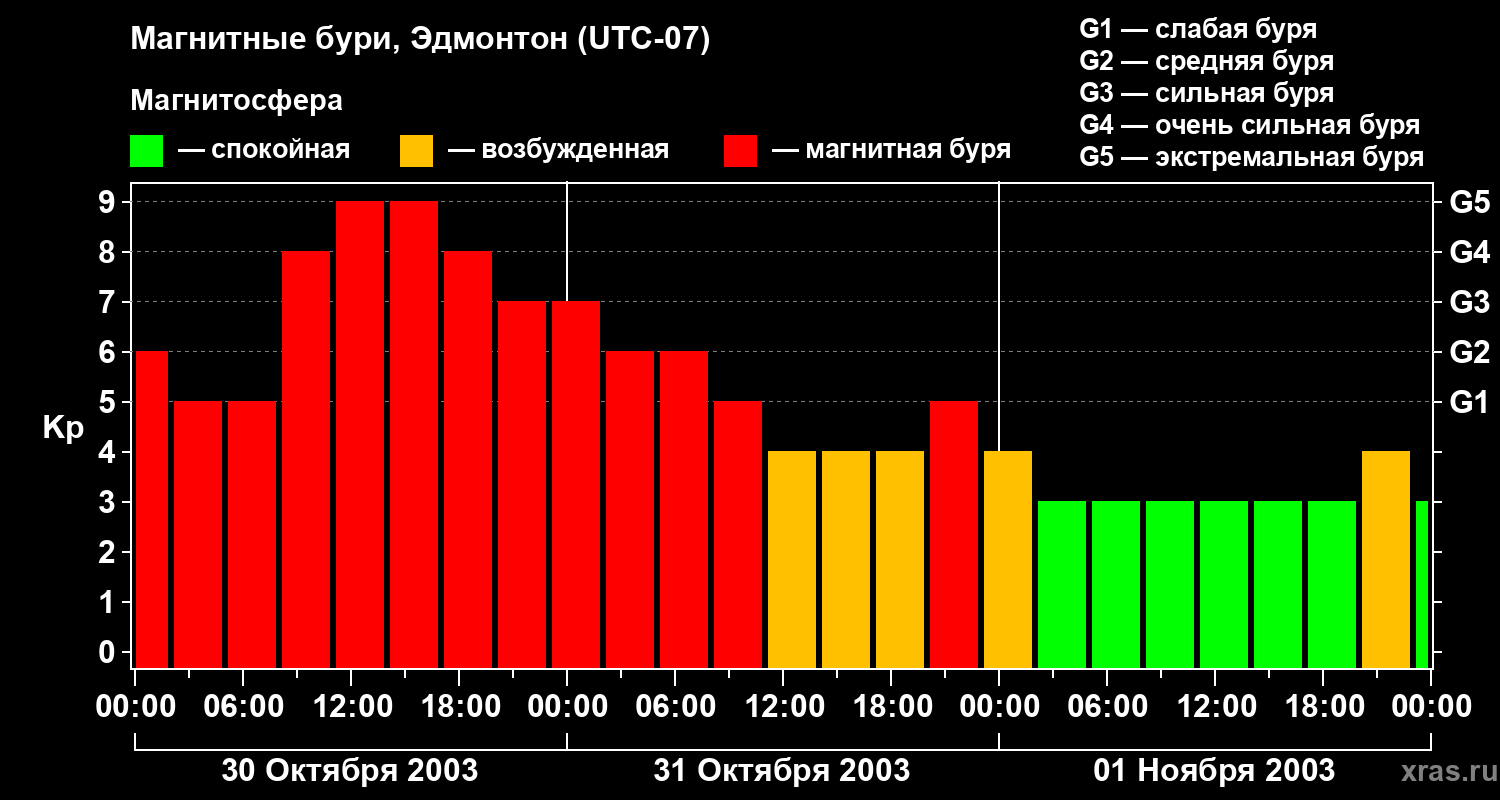 Магнитные бури в Эдмонтоне — 1 ноября 2003 года