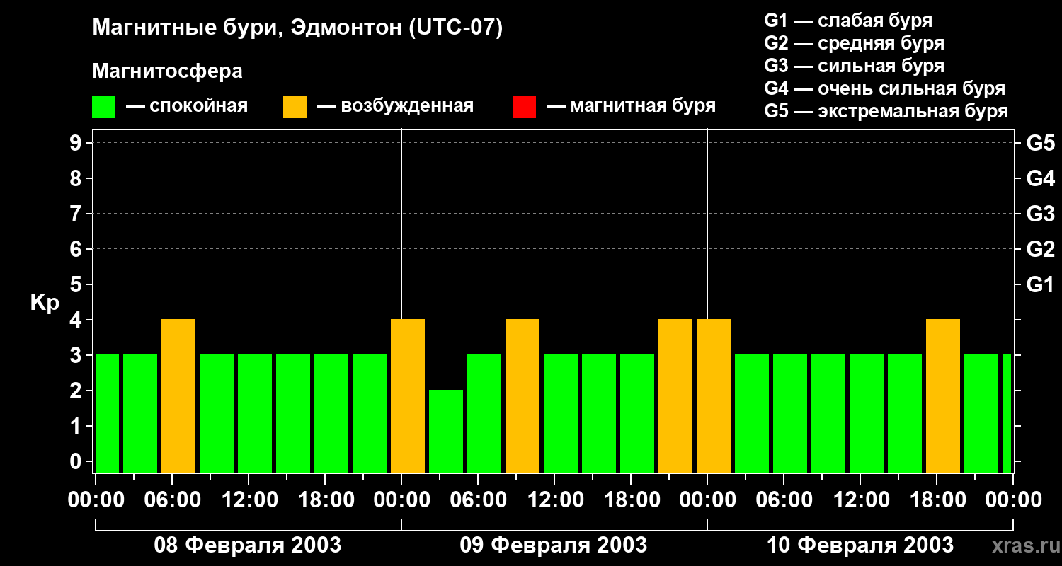 Магнитные бури в Эдмонтоне 10 февраля 2003 года