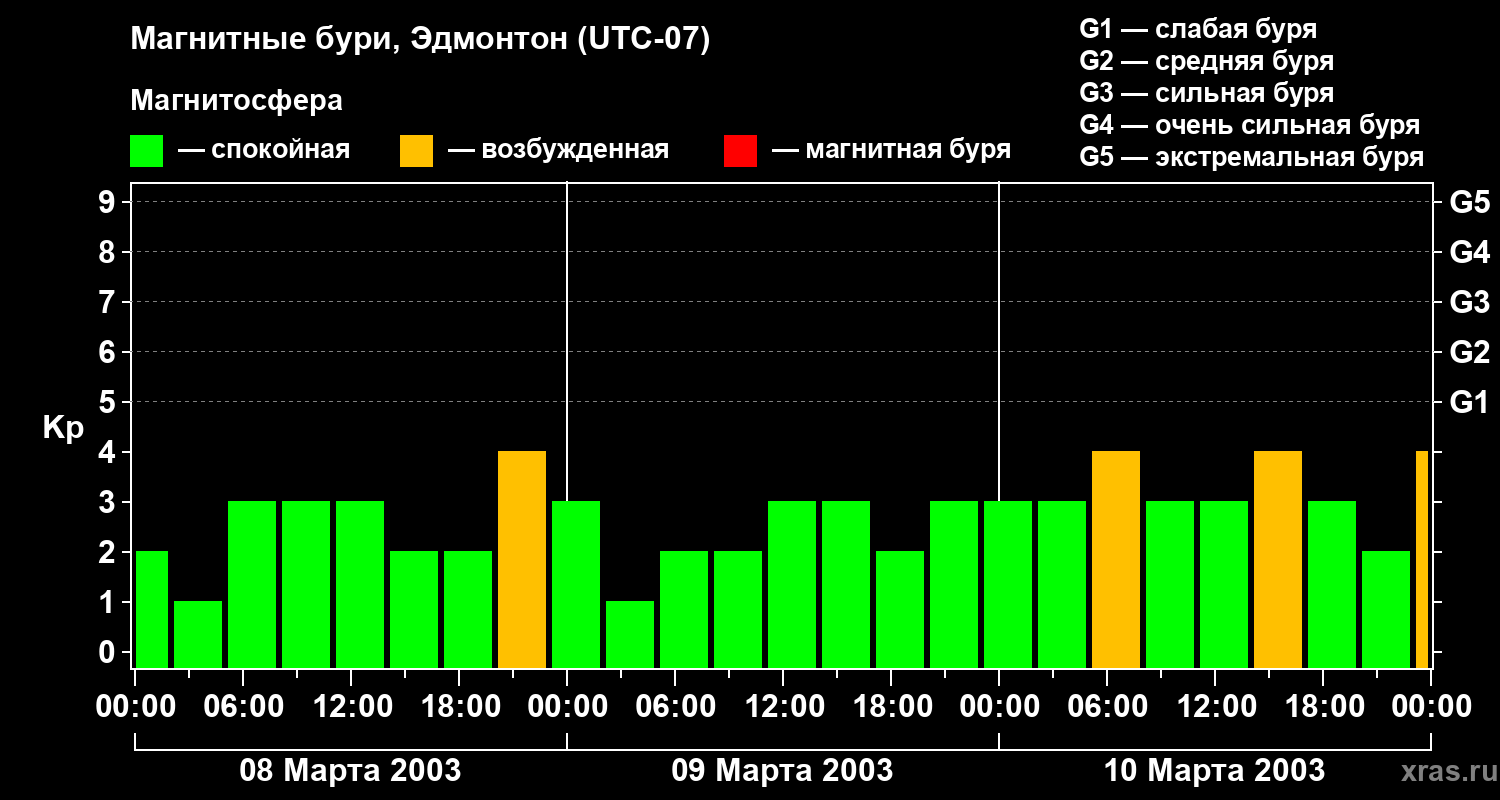 Магнитные бури в Эдмонтоне — 10 марта 2003 года