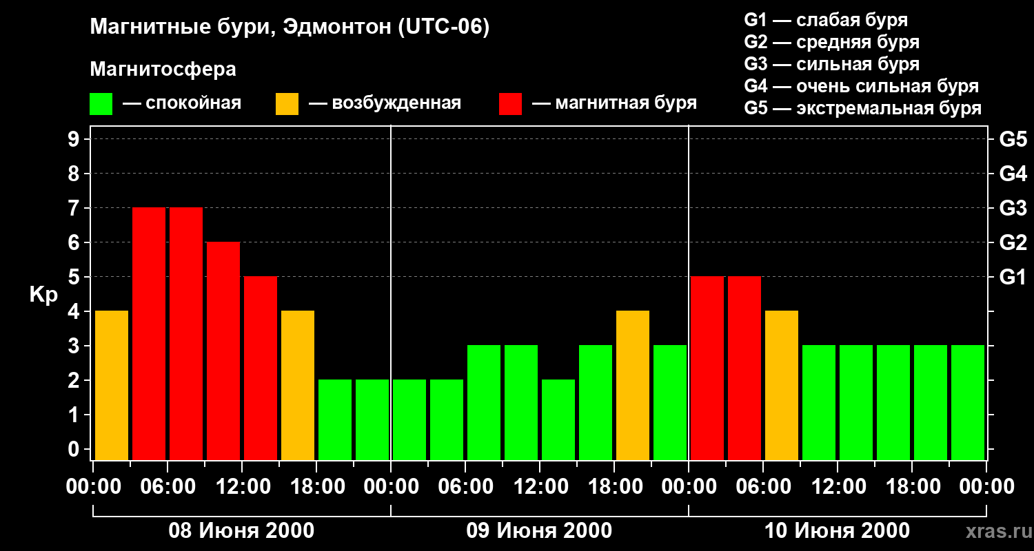 Магнитные бури в Эдмонтоне 10 июня 2000 года