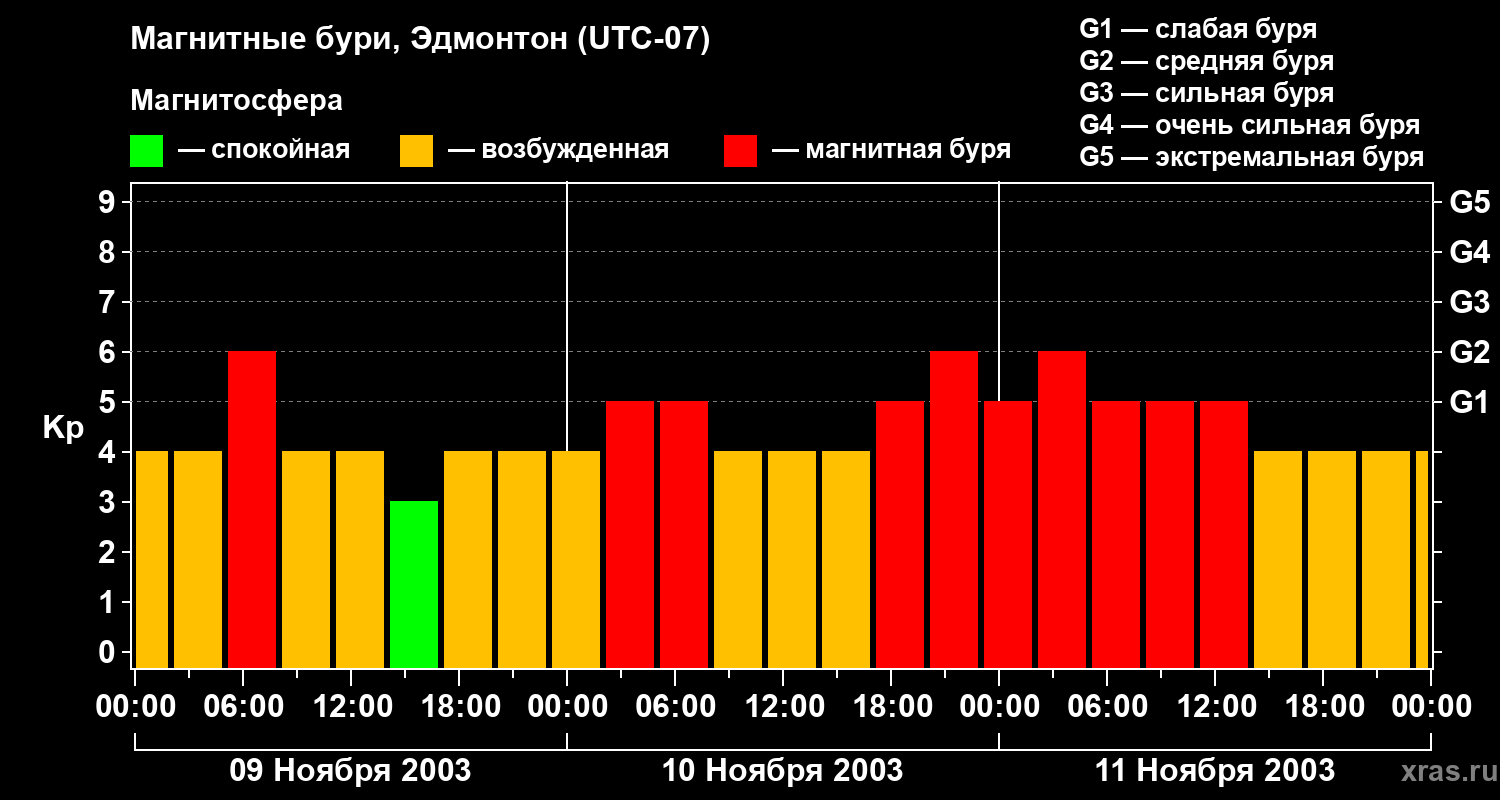 Магнитные бури в Эдмонтоне 11 ноября 2003 года
