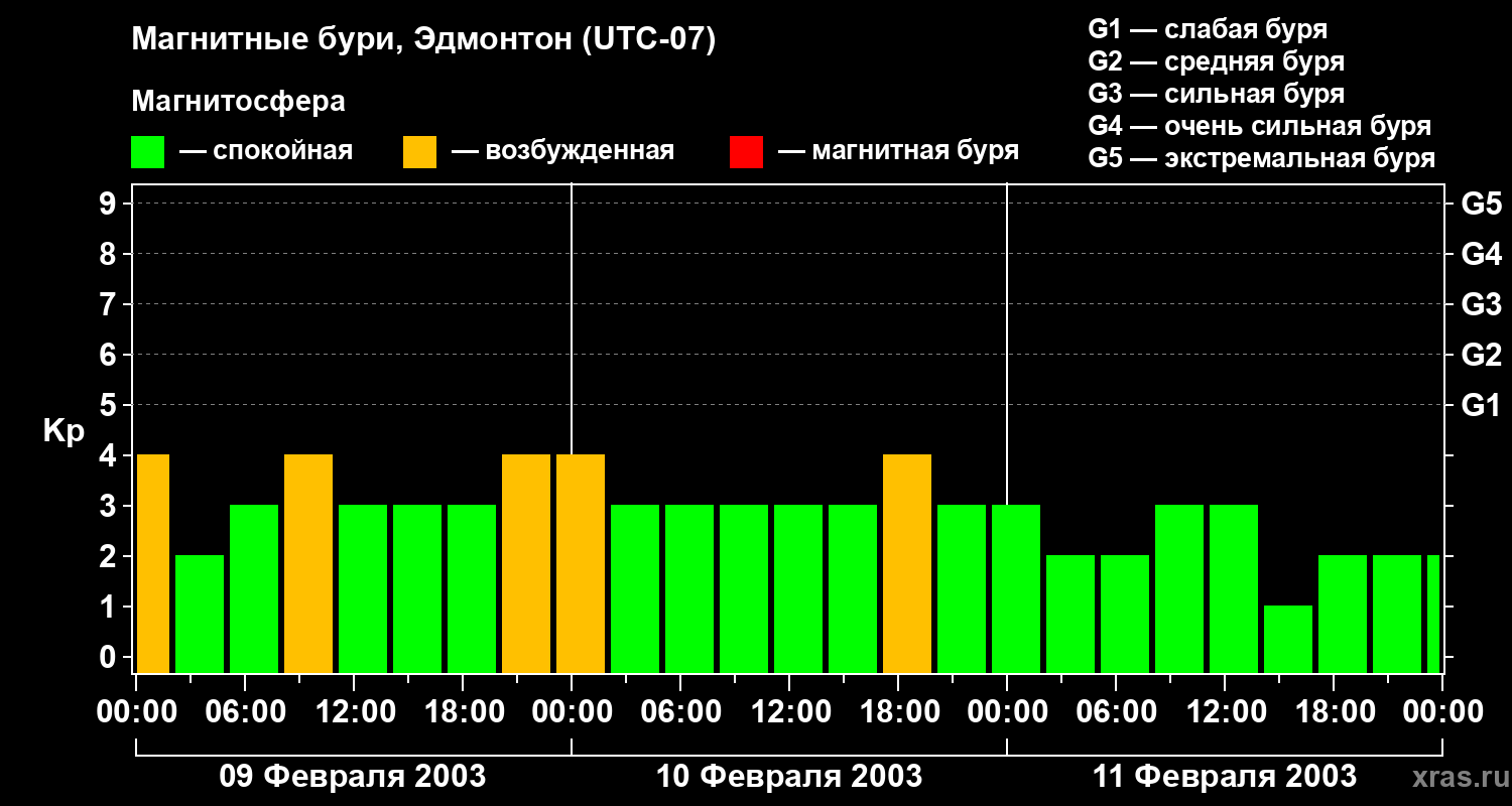 Магнитные бури в Эдмонтоне 11 февраля 2003 года