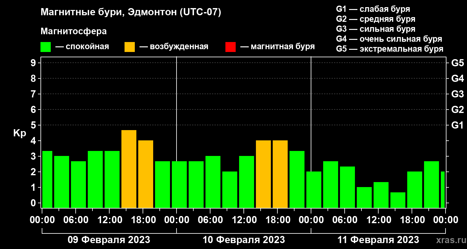 Магнитные бури в Эдмонтоне — 11 февраля 2023 года