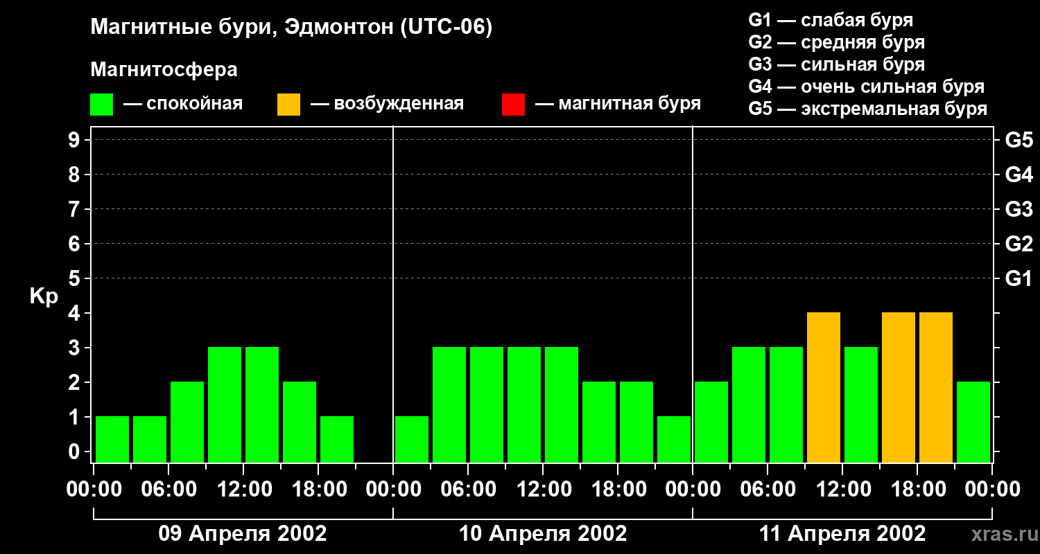 Магнитные бури в Эдмонтоне 11 апреля 2002 года