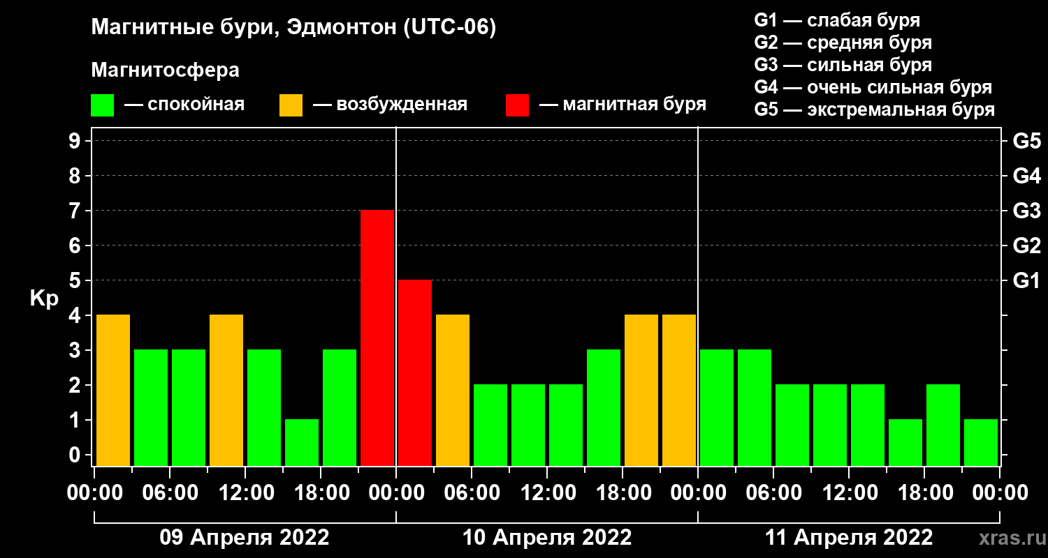 Магнитные бури в Эдмонтоне 11 апреля 2022 года