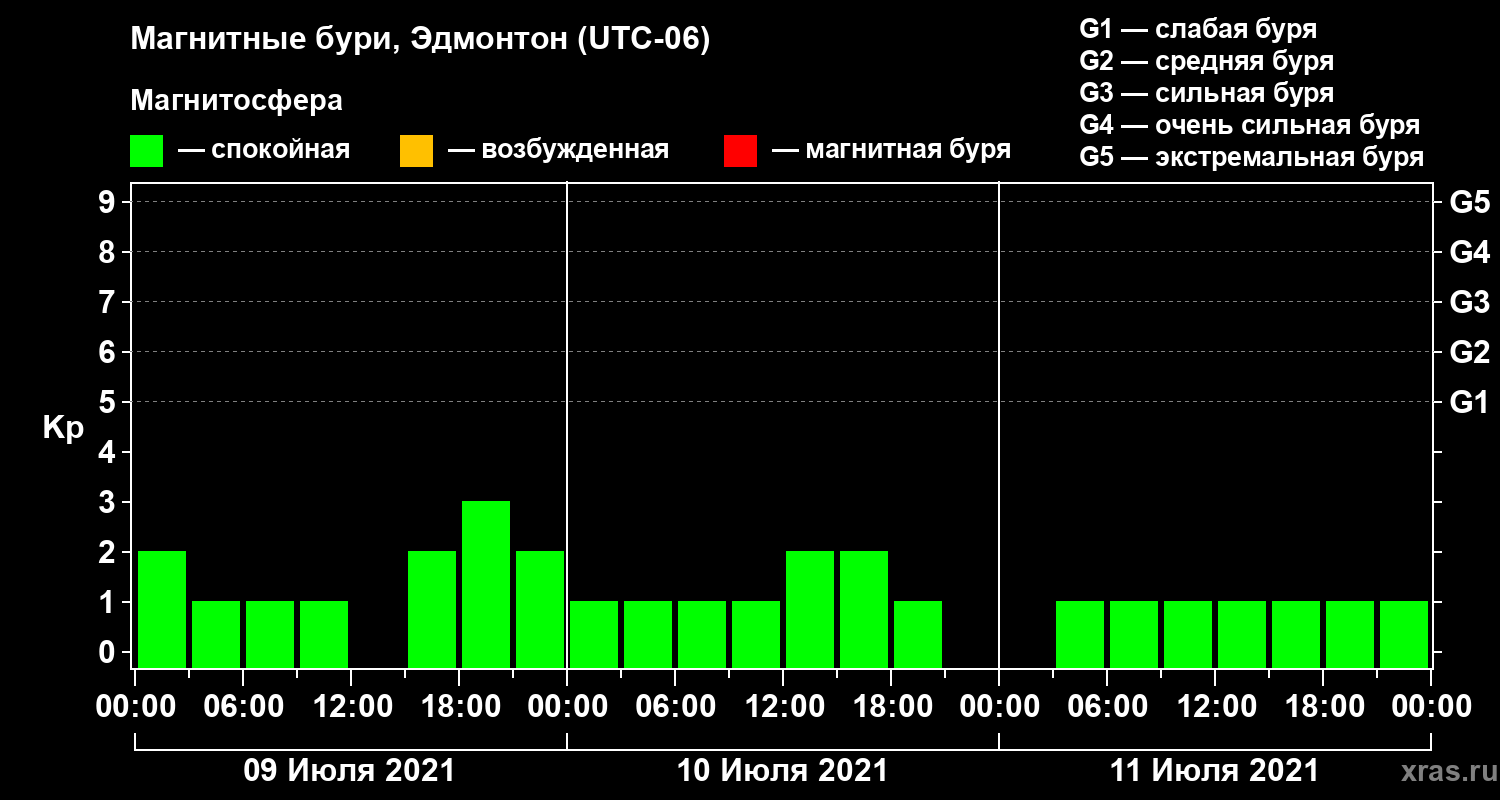 Магнитные бури в Эдмонтоне — 11 июля 2021 года