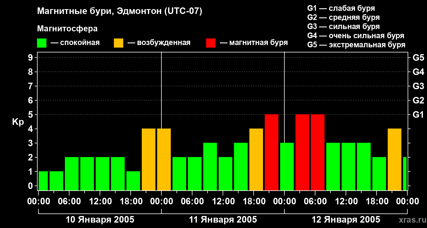 Магнитные бури в Эдмонтоне — 12 января 2005 года