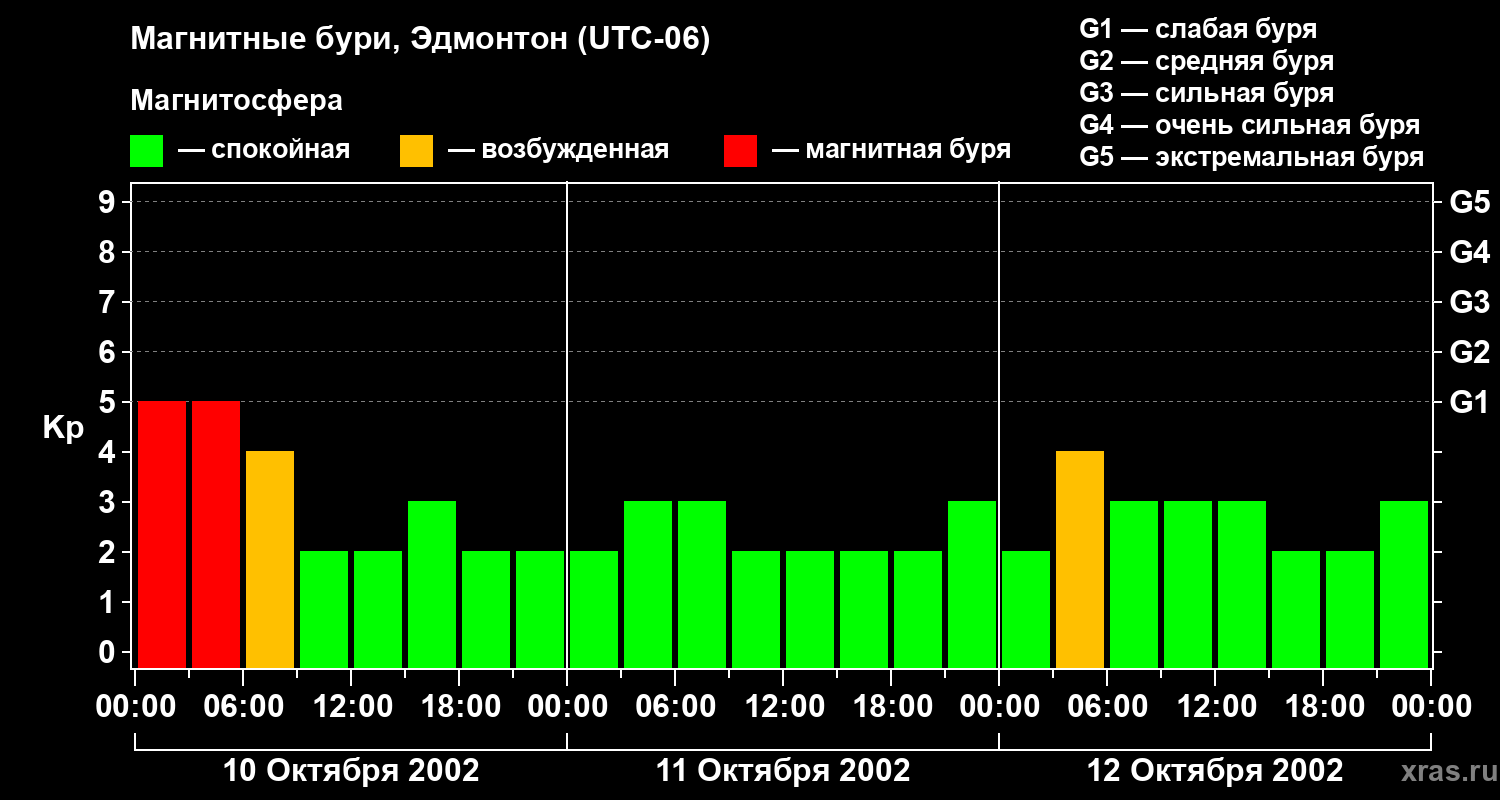 Магнитные бури в Эдмонтоне 12 октября 2002 года