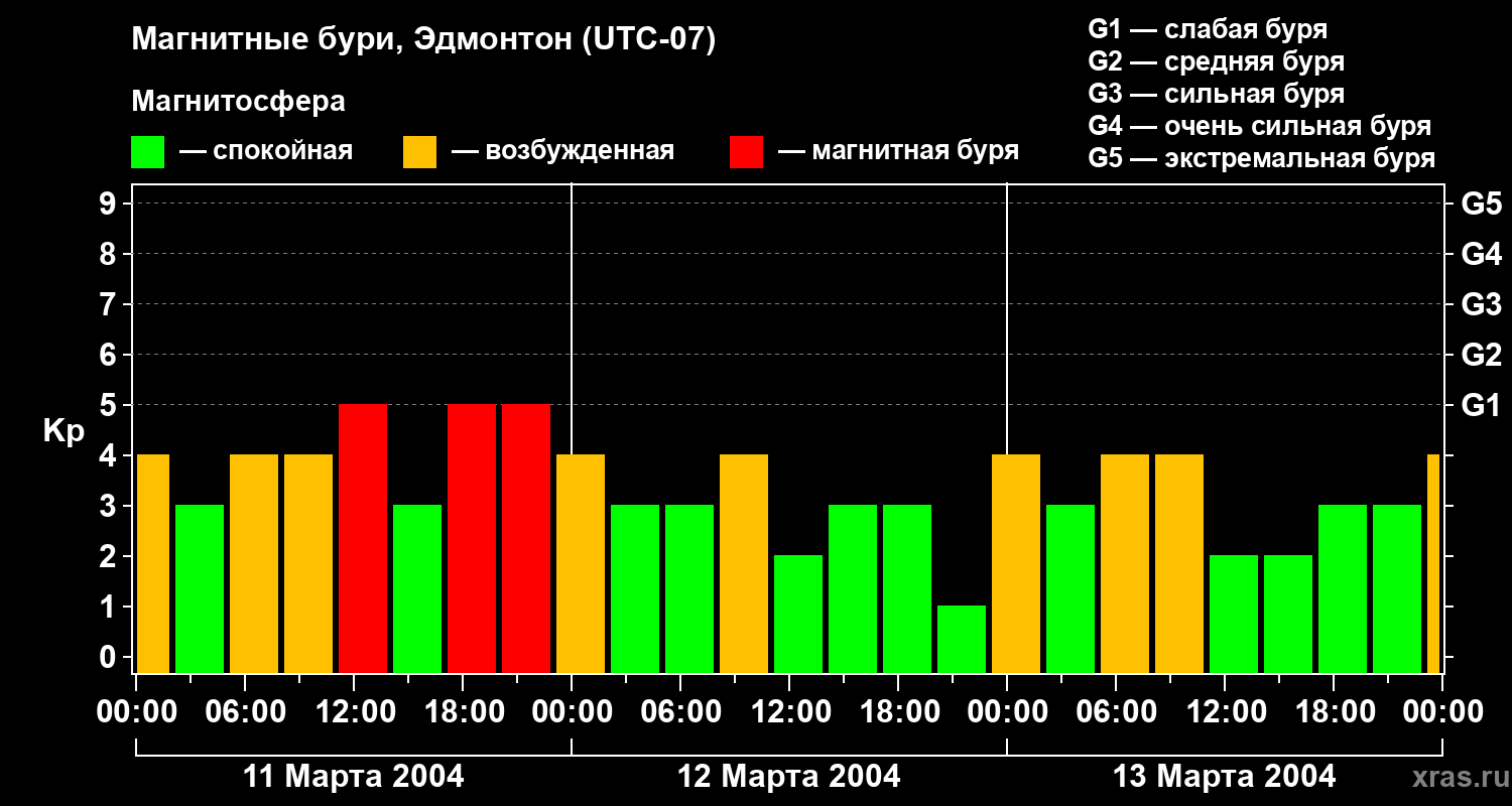 Магнитные бури в Эдмонтоне — 13 марта 2004 года