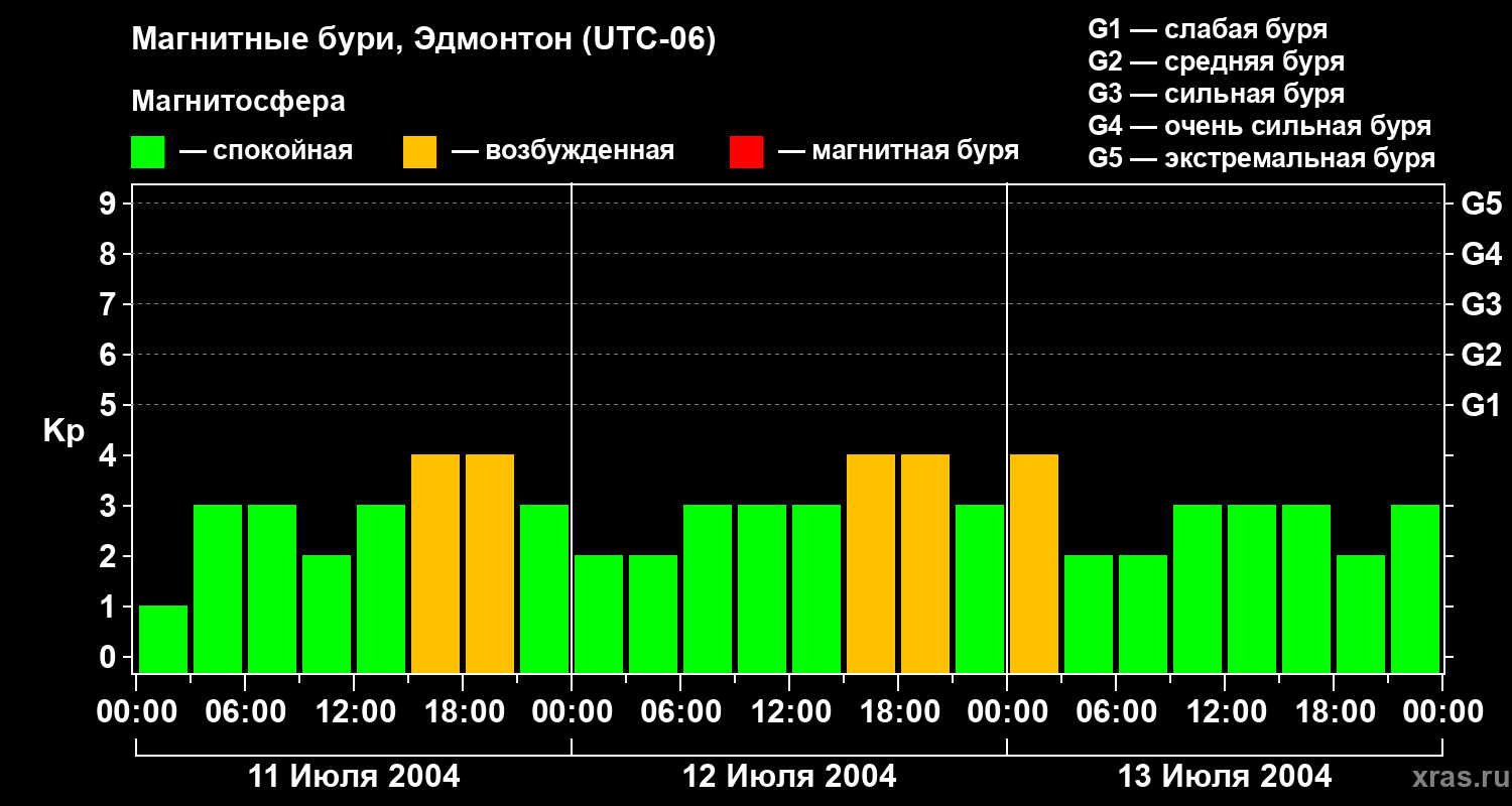 Магнитные бури в Эдмонтоне — 13 июля 2004 года