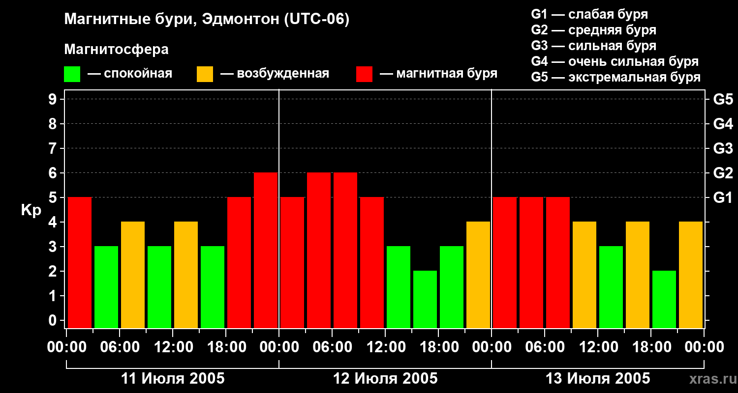 Магнитные бури в Эдмонтоне 13 июля 2005 года