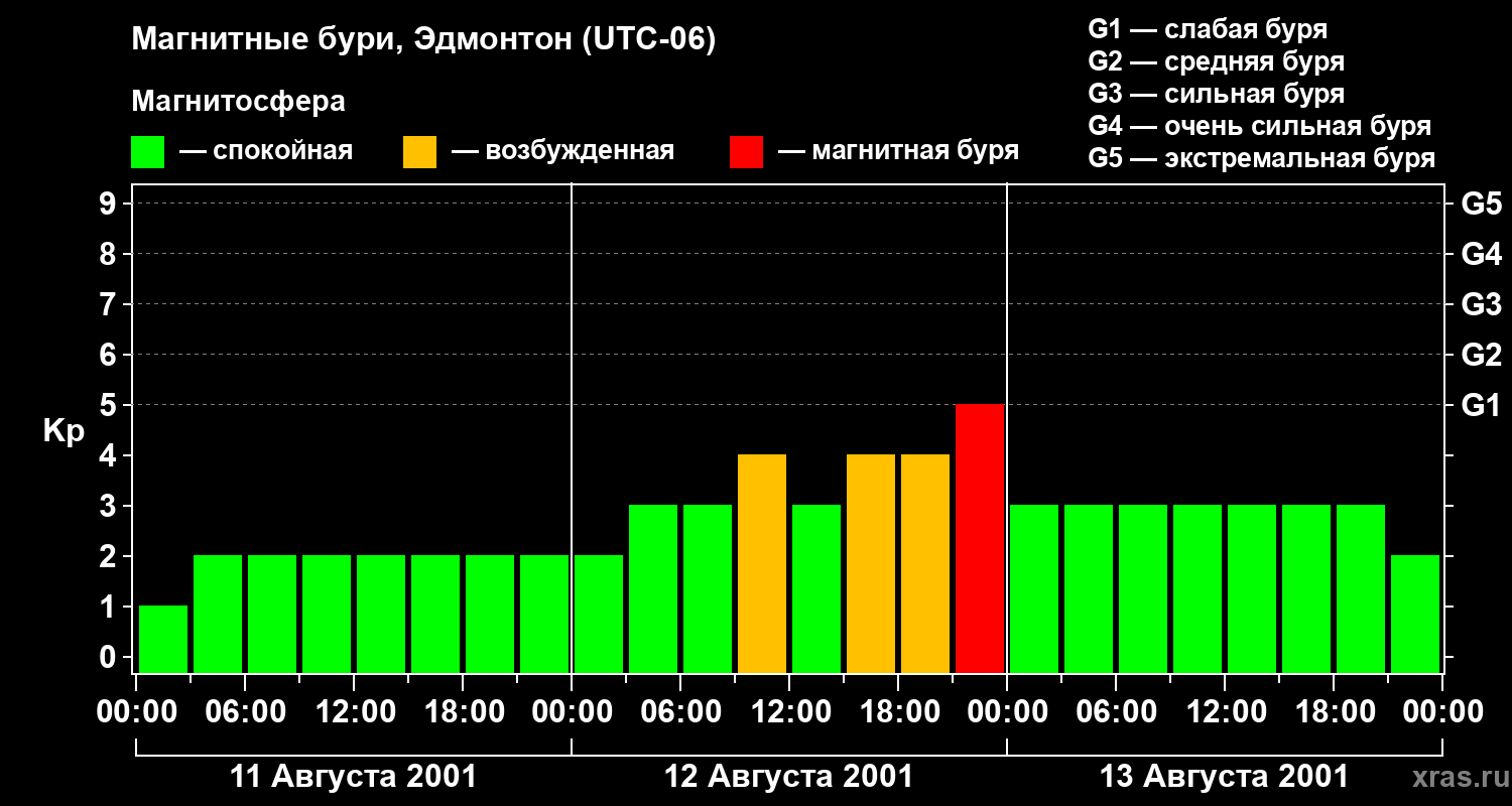 Магнитные бури в Эдмонтоне — 13 августа 2001 года
