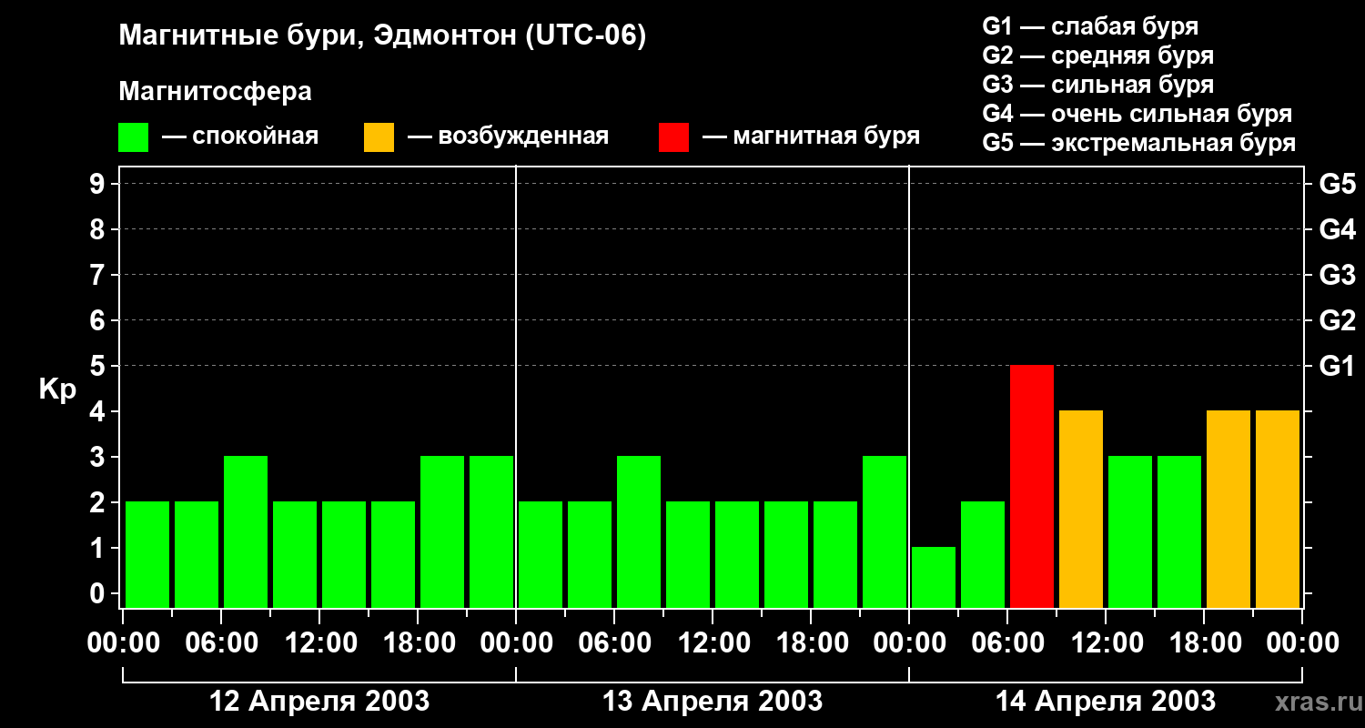 Магнитные бури в Эдмонтоне — 14 апреля 2003 года