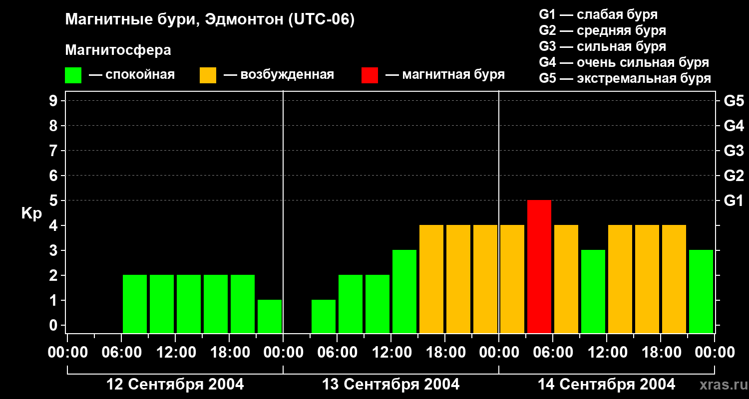 Магнитные бури в Эдмонтоне 14 сентября 2004 года