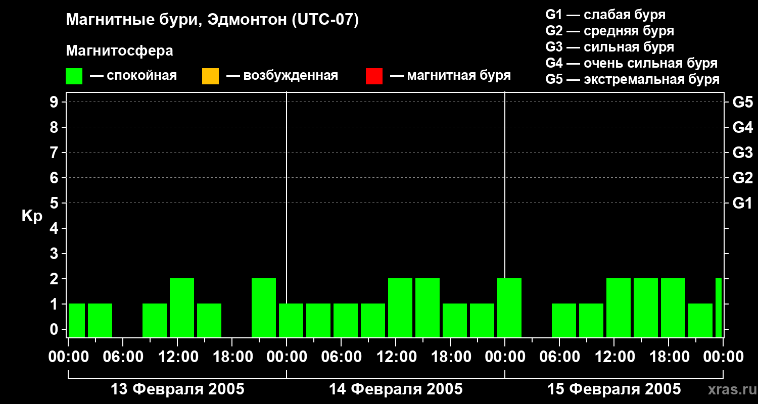 Магнитные бури в Эдмонтоне 15 февраля 2005 года