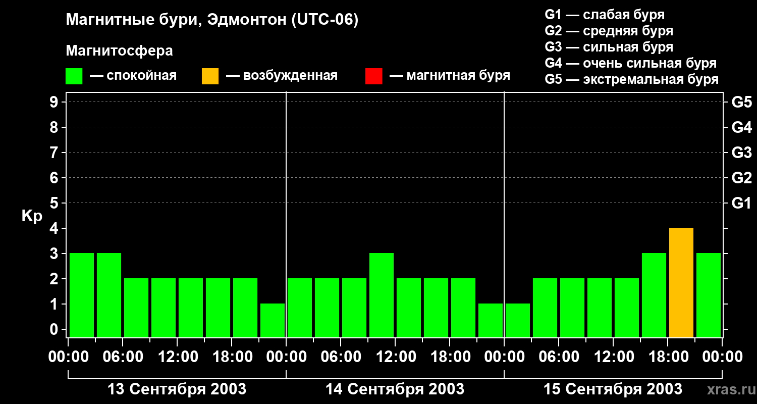Магнитные бури в Эдмонтоне — 15 сентября 2003 года