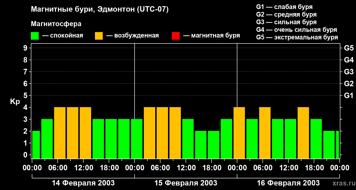 Магнитные бури в Эдмонтоне 16 февраля 2003 года