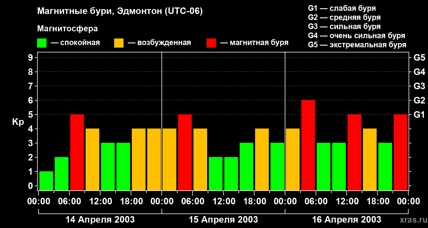 Магнитные бури в Эдмонтоне в апреле 2003 года