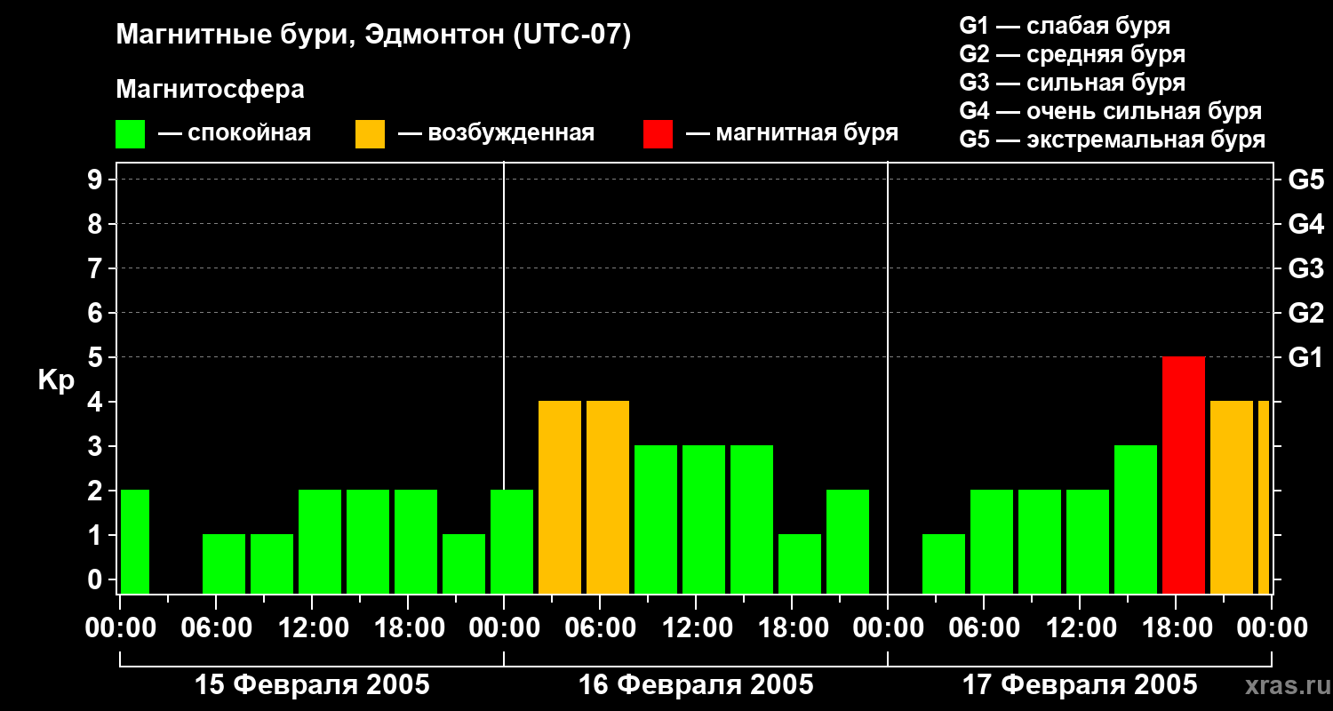 Магнитные бури в Эдмонтоне — 17 февраля 2005 года