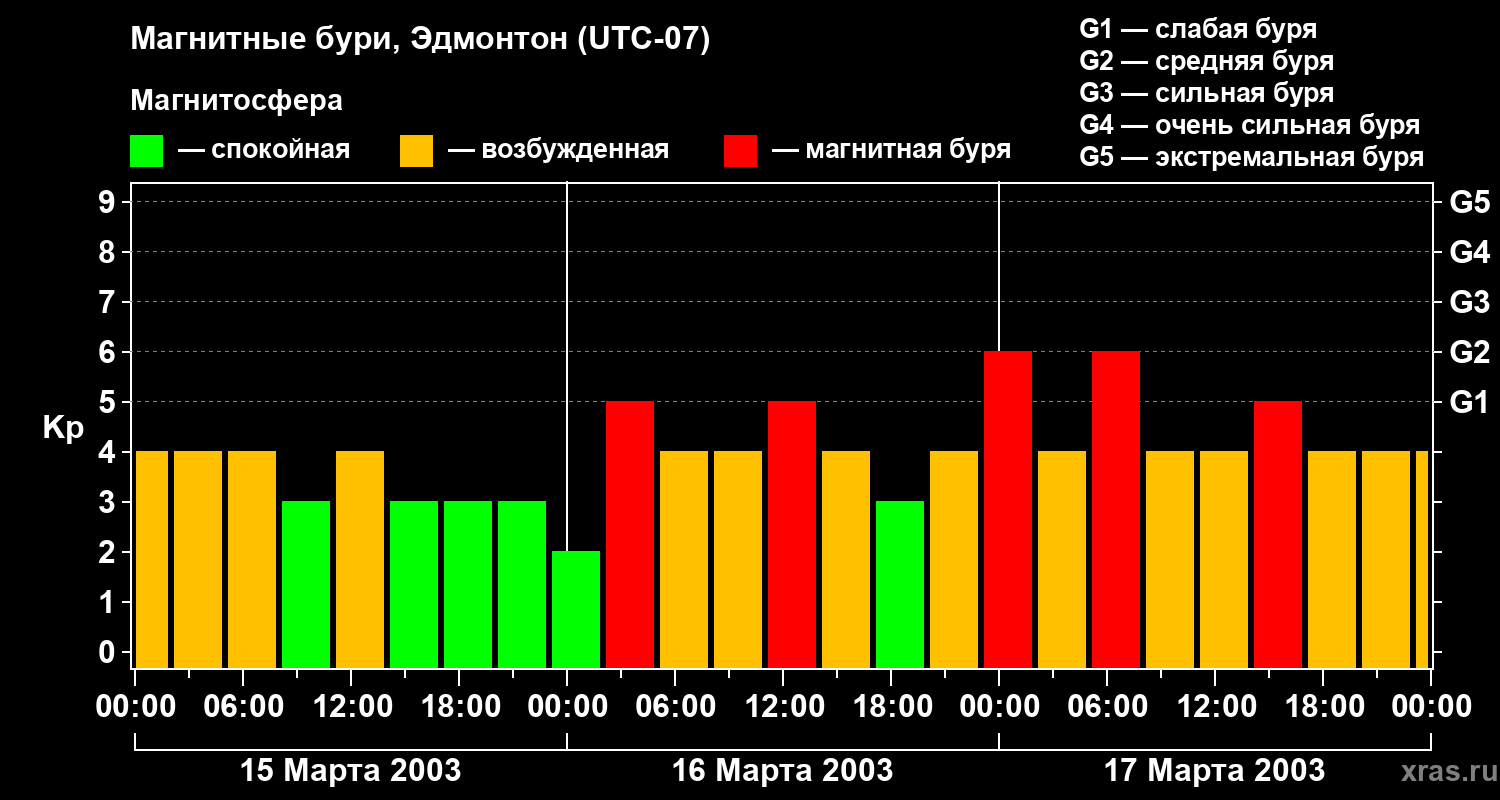 Магнитные бури в Эдмонтоне в марте 2003 года