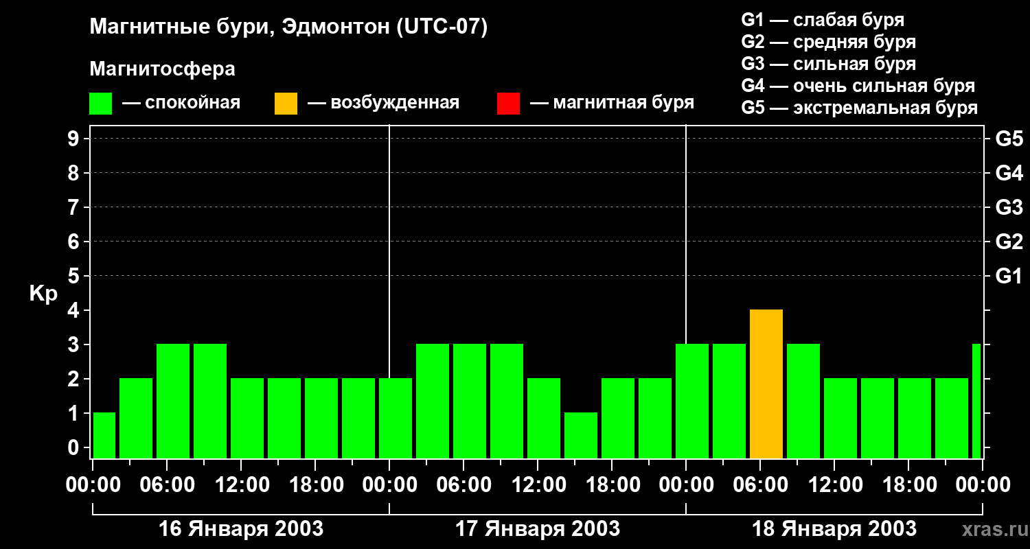 Магнитные бури в Эдмонтоне — 18 января 2003 года