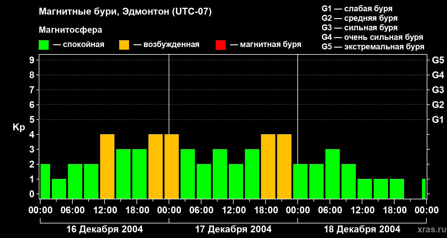 Магнитные бури в Эдмонтоне — 18 декабря 2004 года