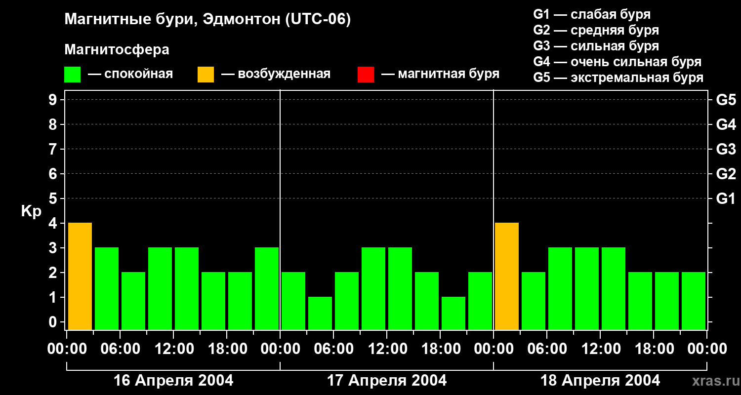 Магнитные бури в Эдмонтоне в апреле 2004 года