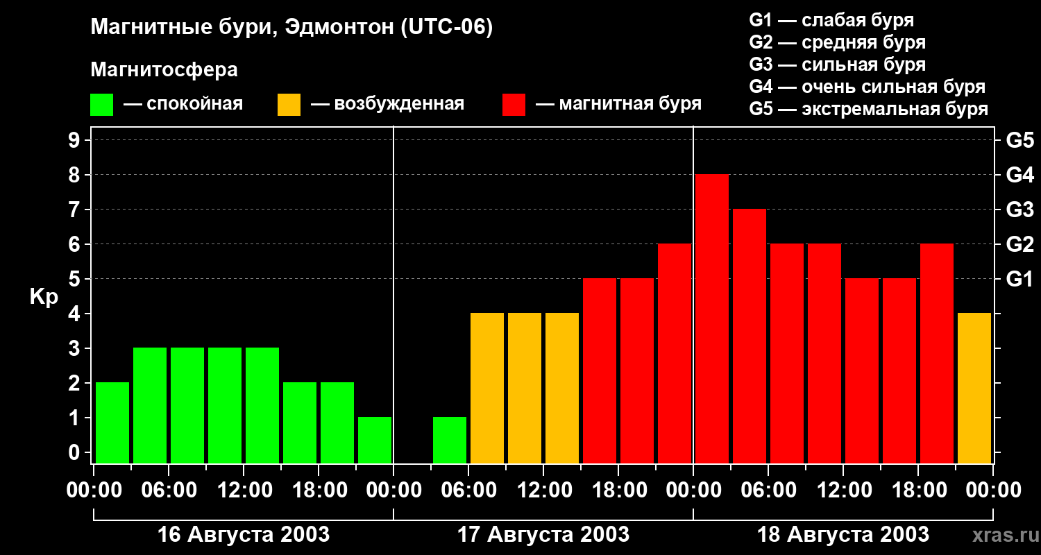 Магнитные бури в Эдмонтоне в августе 2003 года