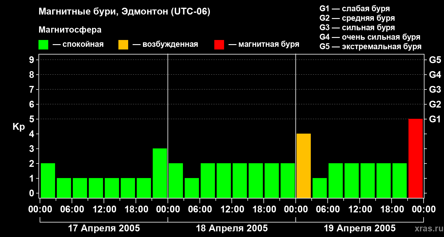 Магнитные бури в Эдмонтоне в апреле 2005 года