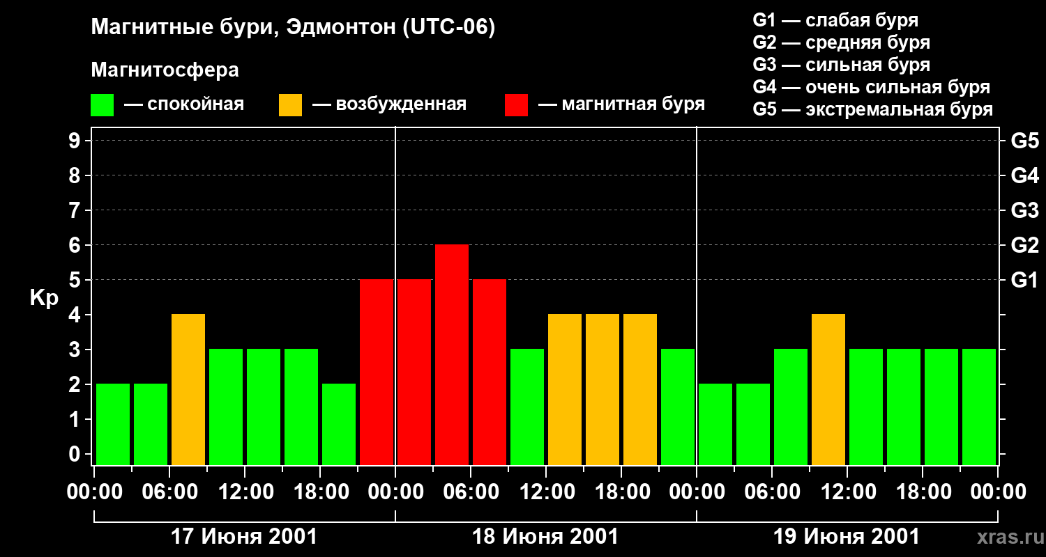 Магнитные бури в Эдмонтоне в июне 2001 года
