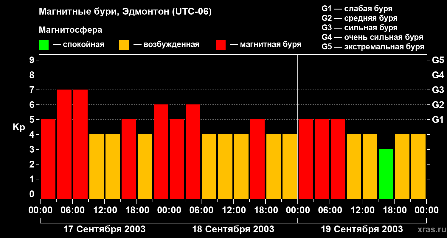 Магнитные бури в Эдмонтоне — 19 сентября 2003 года