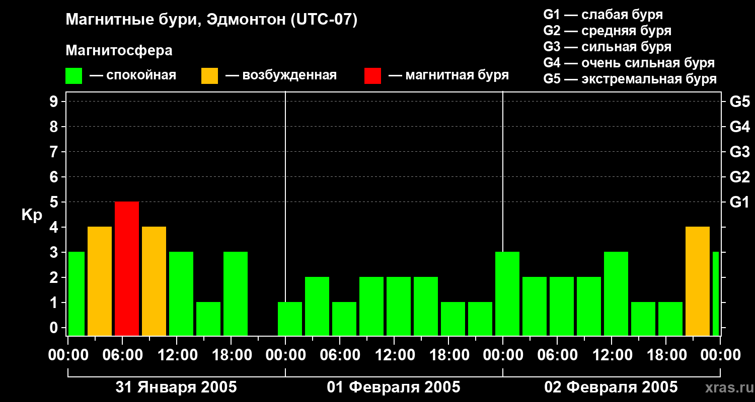 Магнитные бури в Эдмонтоне — 2 февраля 2005 года