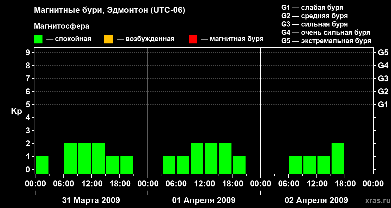 Магнитные бури в Эдмонтоне 2 апреля 2009 года