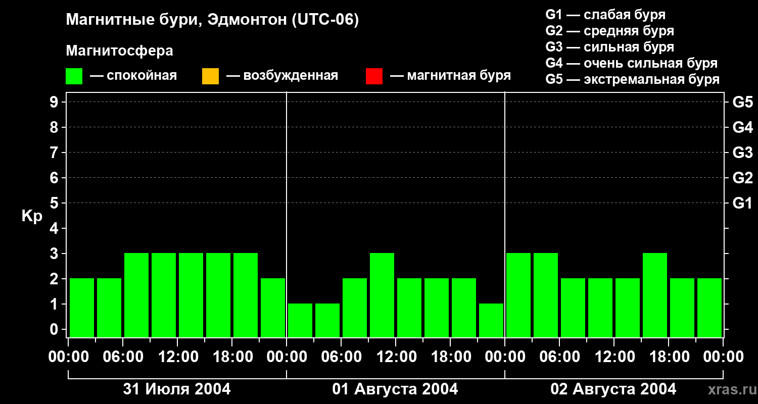 Магнитные бури в Эдмонтоне — 2 августа 2004 года