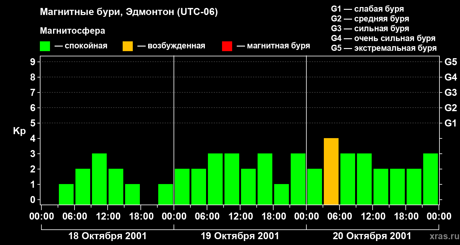 Магнитные бури в Эдмонтоне 20 октября 2001 года
