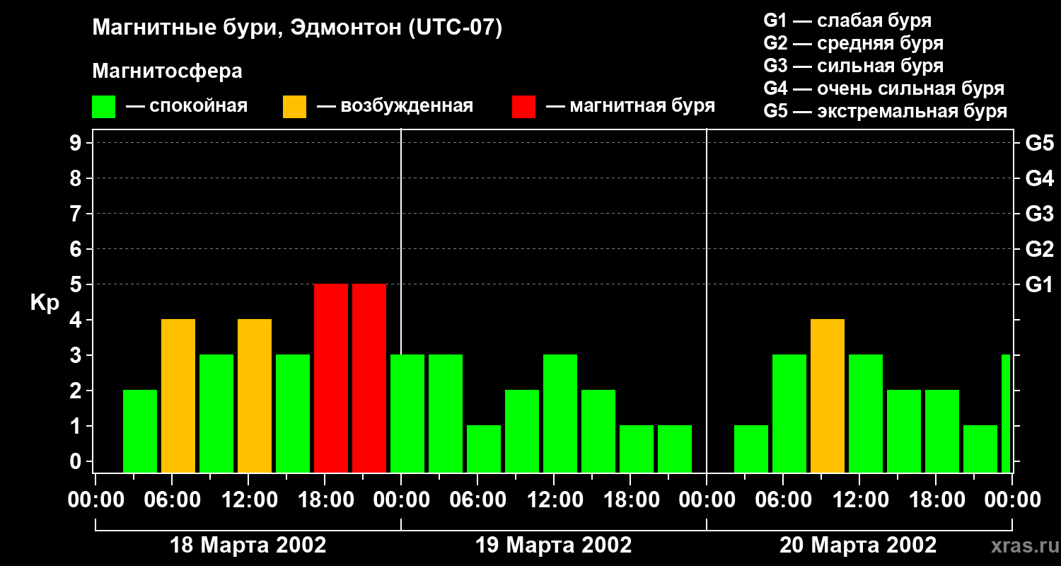 Магнитные бури в Эдмонтоне — 20 марта 2002 года