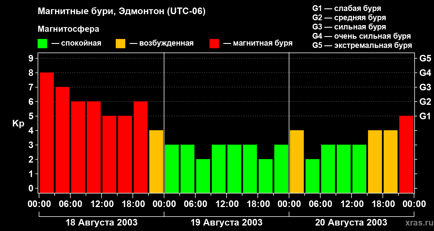 Магнитные бури в Эдмонтоне — 20 августа 2003 года