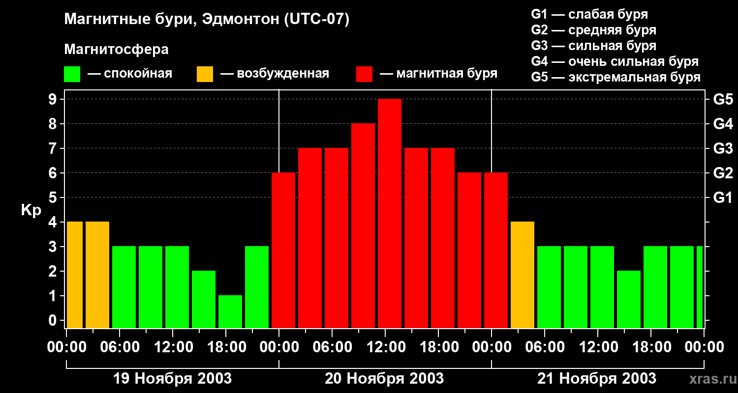 Магнитные бури в Эдмонтоне — 21 ноября 2003 года