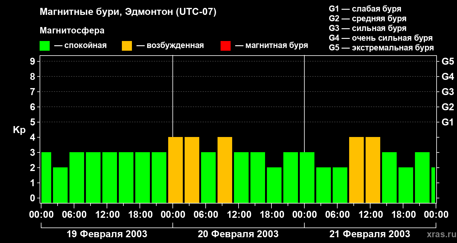 Магнитные бури в Эдмонтоне — 21 февраля 2003 года